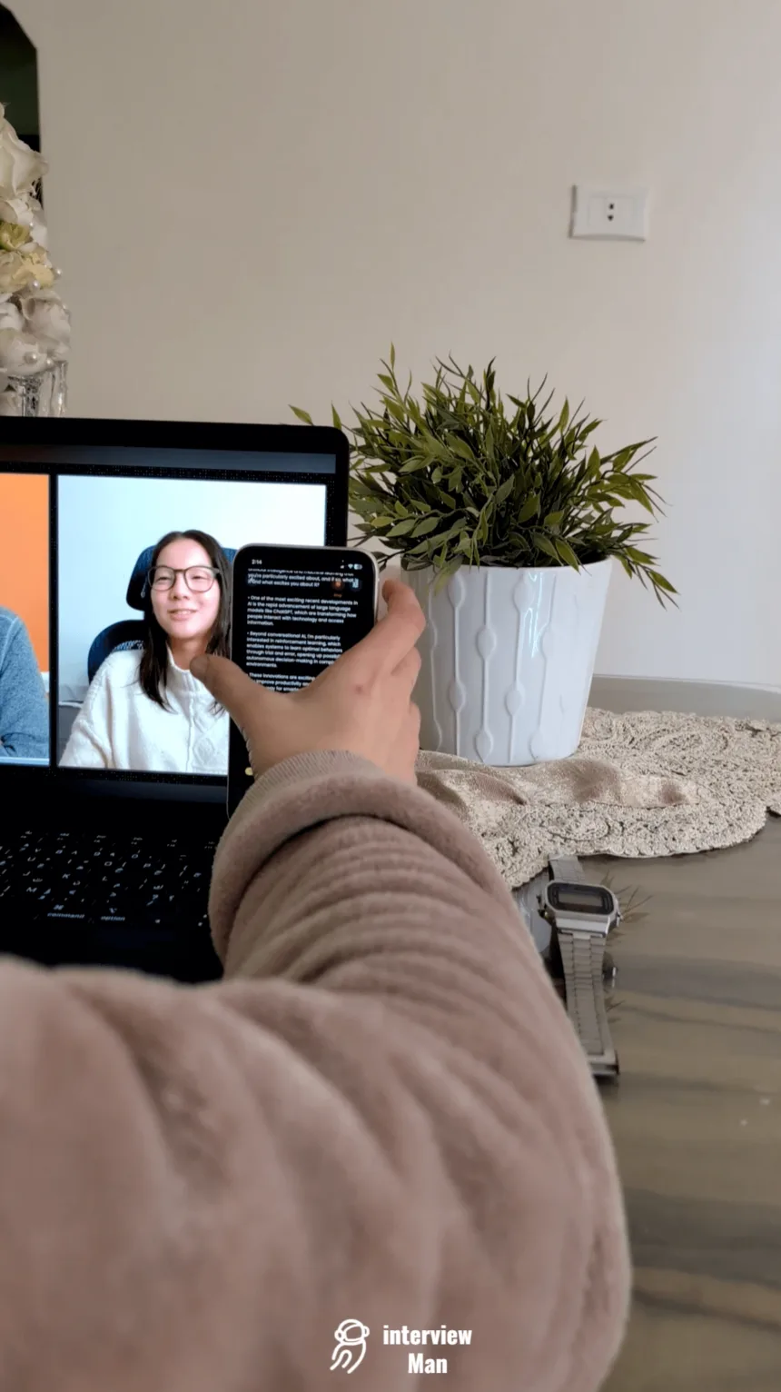 Even if the session is recorded, InterviewMan leaves no visible windows or overlays on the recording.